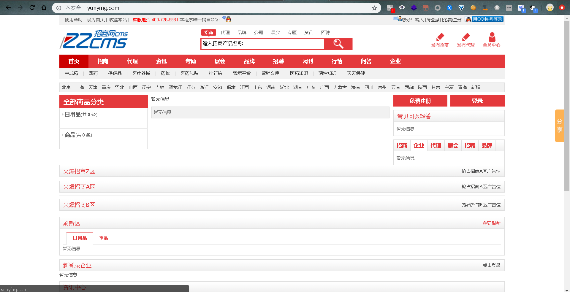 ZZCMS突出招商及供求功能,适用于网上招商、加盟的行业。例如医药招商行业, 保健品招商行业, 化妆品招商行业, 副食类行业等等