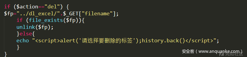 从下面的图片可以看出,只要action参数等于'del'时,就能进随意的删除了,无需什么认证这个操作是极其危险。