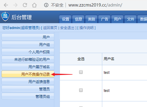 function markit(){ $userip=$_SERVER["REMOTE_ADDR"]; //$userip=getip(); $url="http://".$_SERVER['HTTP_HOST'].$_SERVER['REQUEST_URI']; query("insert into zzcms_bad (username,ip,dose,sendtime)values('".$_COOKIE["UserName"]."','$userip','$url','".date('Y-m-d H:i:s')."')") ; } function admindo(){ $adminip=getip(); $url="http://".$_SERVER['HTTP_HOST'].$_SERVER['REQUEST_URI']; $f=zzcmsroot2."admindoes.txt"; $fp=fopen($f,"a+");//fopen()的其它开关请参看相关函数 $str=date('Y-m-d H:i:s')." ".$_COOKIE["admin"]." ".$adminip." ".$url."\r\n"; fputs($fp,$str); fclose($fp); }