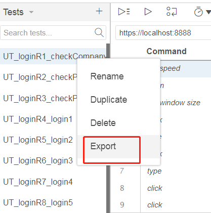 选中测试用例,右键点击Export,然后选择Java,即可导出为Java单元测试: