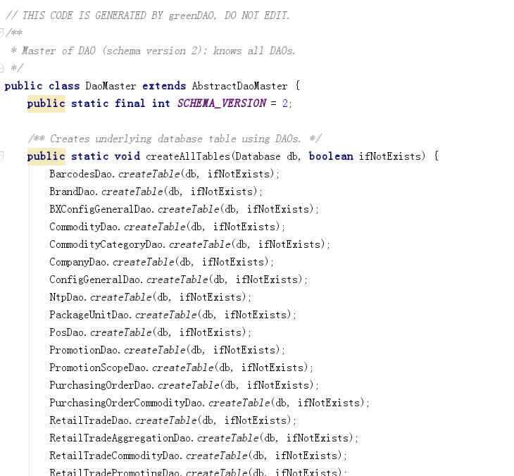 如果要升级数据库,做一些修改表结构的操作,我们可以新建一个类,继承DaoMaster.DevOpenHelper,这个类是greenDao生成的: