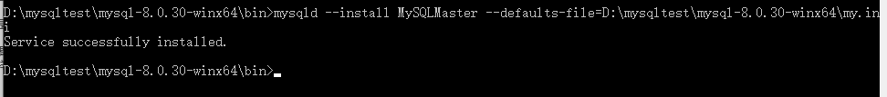 mysqld --install MySQLMaster --defaults-file=D:\mysqltest\mysql-8.0.30-winx64\my.ini