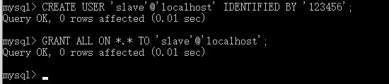 CREATE USER 'slave'@'localhost' IDENTIFIED BY '123456';