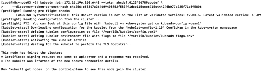 此时主节点初始化完成并提示node节点加入主节点的命令: