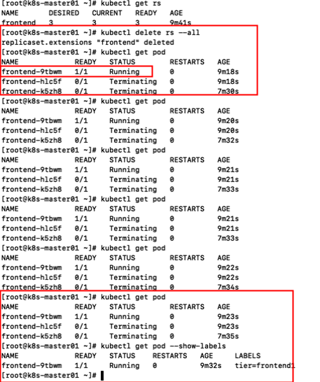 并且当我们删除RS时,可以对比看一下:(发现被修改后的标签的Pod并没有被删除)