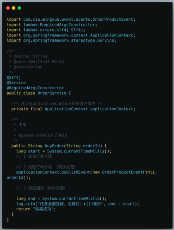 MQ 确实可以解决这个问题,但 MQ 重啊,非必要不提升架构复杂度。针对这些问题,我们了解一下 Spring Event。