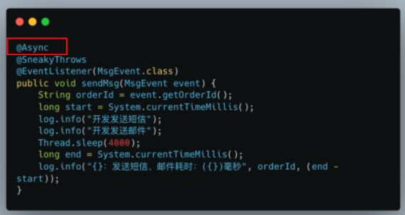 Listener 类需要开启异步的方法增加 @Async 注解