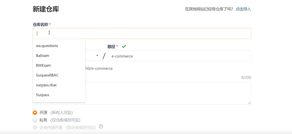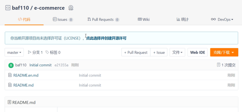 1.1登陆后新建仓库