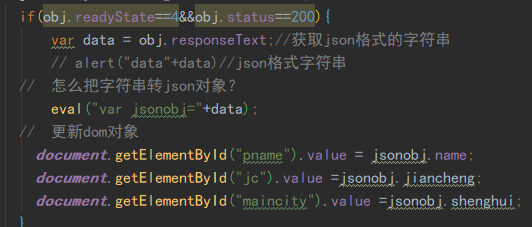 2)对异步对象onreadystatechange操作 一般在status==200&&readystate==4时进行数据获取操作,获取值:使用异步对象.responseText