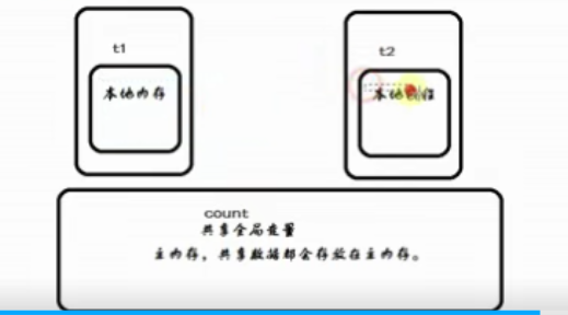 t1从主内存中获取了变量,修改后还没有更新回主存,然后t2从主内存中获取变量并修改,此时就会出现线程安全问题