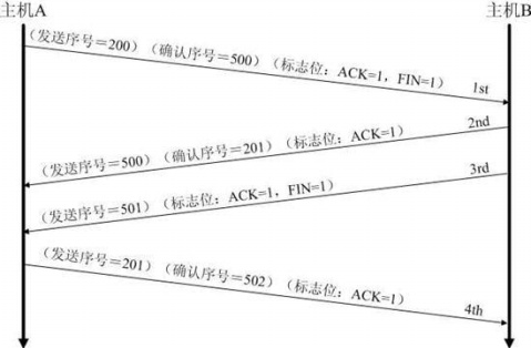 (4)客户端A发回ACK报文确认,并将确认序号设置为收到序号加1。