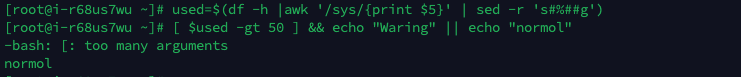 [ $used -gt 50 ] && echo "Waring" || echo "normol" # 如果超过50%就告警