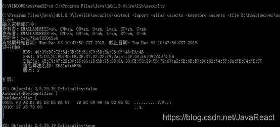 keytool -import -alias cacerts -keystore cacerts -file C:\ssl.crt centos7 : keytool -import -alias cacerts -keystore cacerts -file crt正式存放目录/ssl.crt
