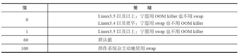 OOM(Out Of Memory)killer 机制是指 Linux 操作系统发现可用内存不足时,强制杀死一些用户进程(非内核进程),来保证系统有足够的可用内存 进行分配。 为使配置在重启 Linux 操作系统后立即生效,只需要在/etc/sysctl.conf 追加 vm.swappiness={bestvalue}即可 echo vm.swappiness={bestvalue} >> /etc/sysctl.conf