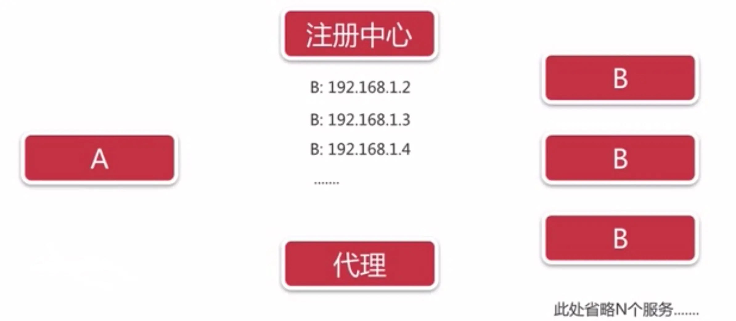 服务端发现相对于客户端发现,多了一个代理,代理帮 A 从众多的 B 中挑选一个 B