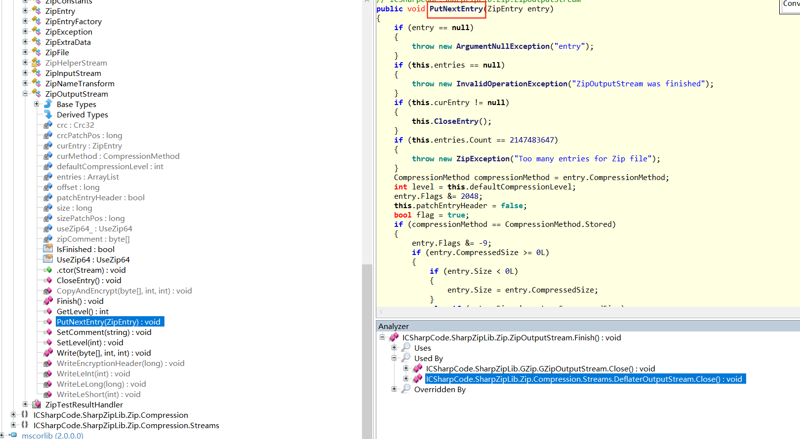 当然本着学习的精神我们直接找到源码看一下,通过上面C#的代码我们可以发现主要就是 PutNextEntry在做压缩这件事情
