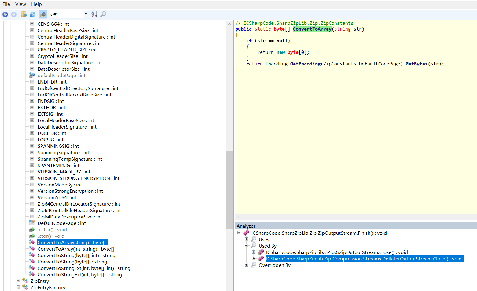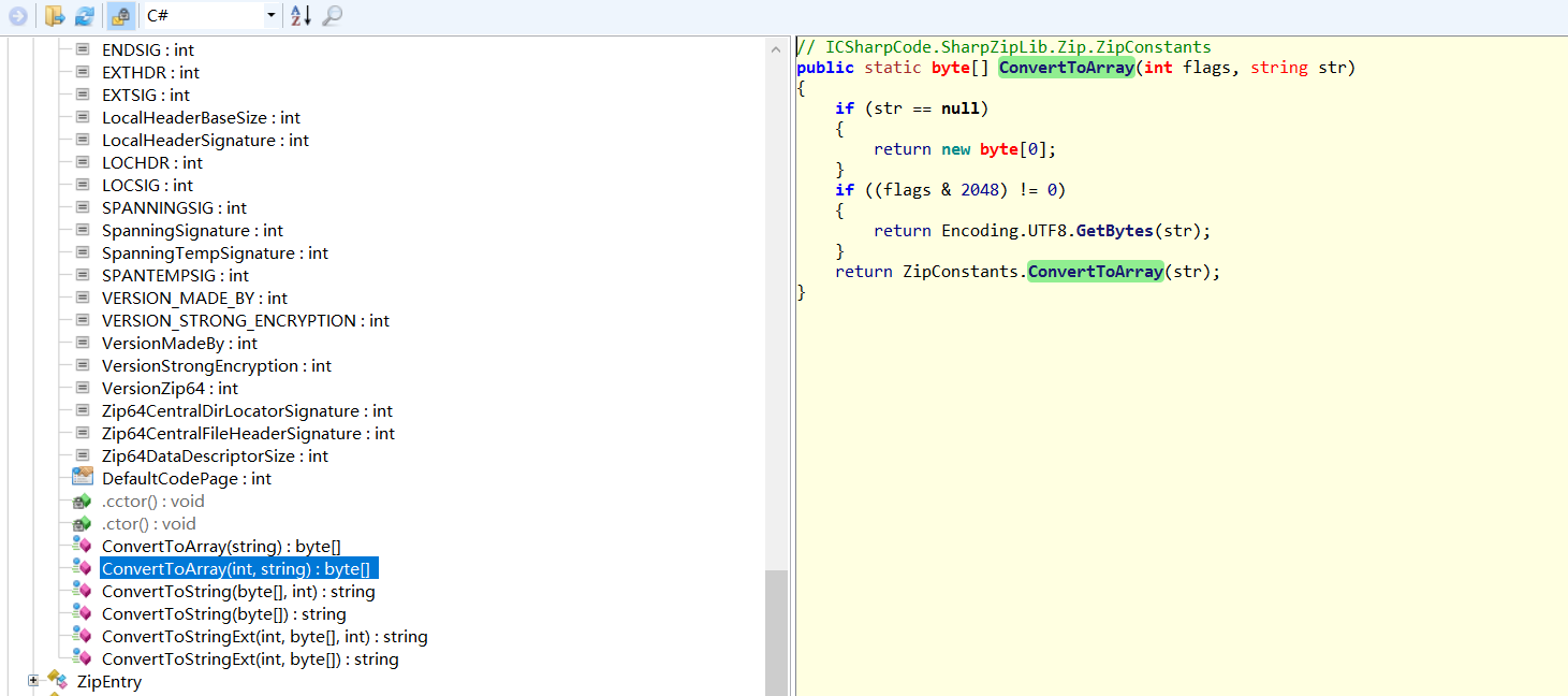 可以看到这里使用的编码方式就是ZipConstants.DefaultCodePage这个属性,那么解决方案就有了 我们直接改掉这个属性就可以了