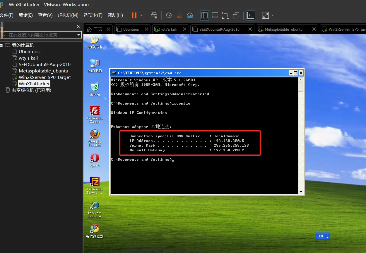 | winXPattacker | Windows XP | 192.168.200.5 |