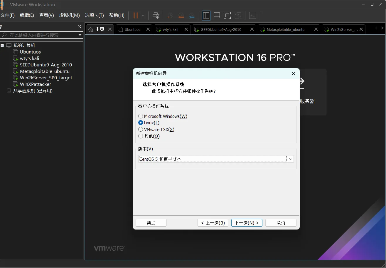 选择稍后安装操作系统,客户机操作系统选择Linux,版本为CentOS5和更早版本