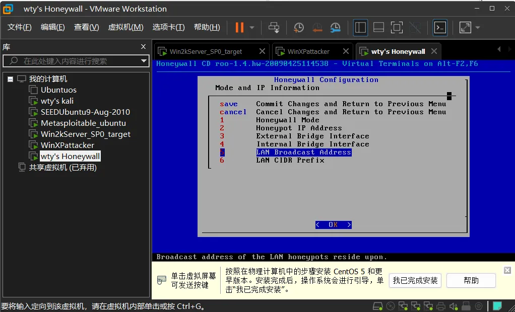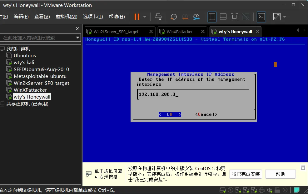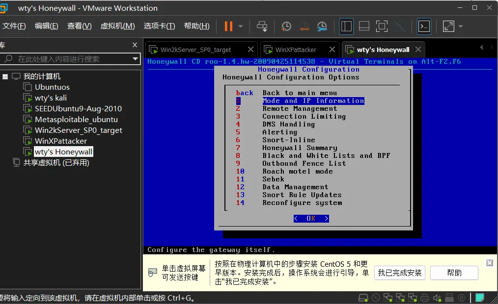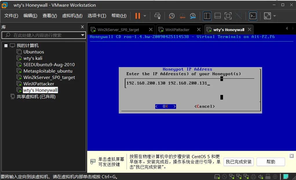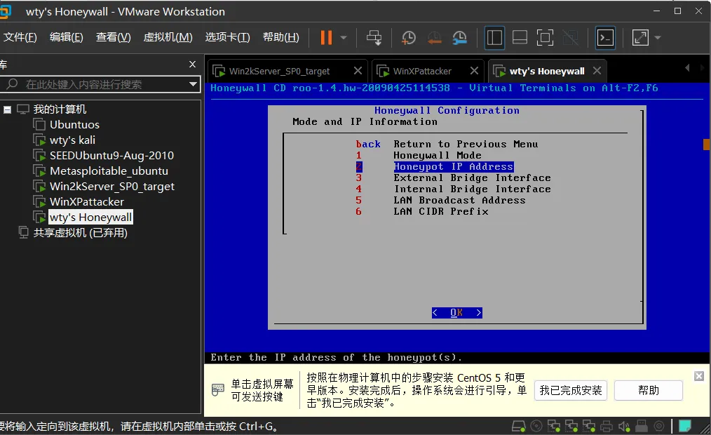 选择第二项配置蜜罐IP,输入两个靶机的IP地址