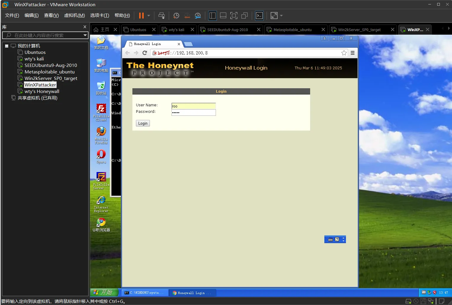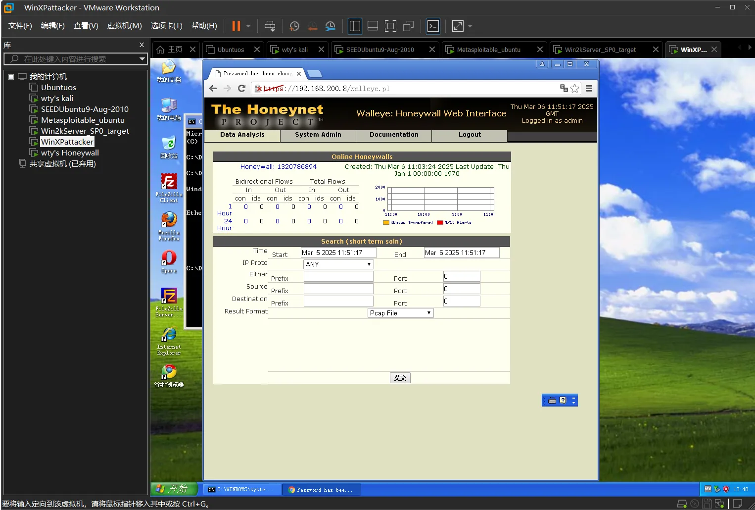 通过攻击机WinXPattacker的浏览器访问蜜网网关,登录蜜网网关的用户后需要修改密码,这里将密码修改为Honey1@@@,成功后显示出上图所示的监听界面
