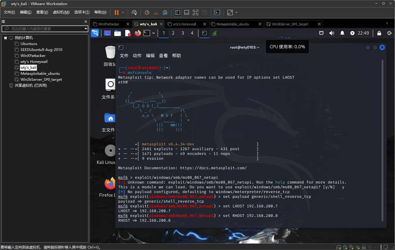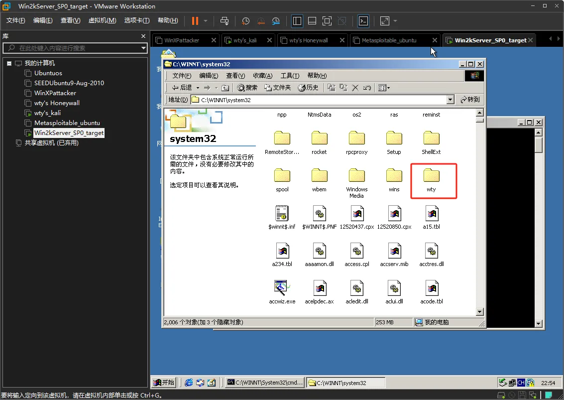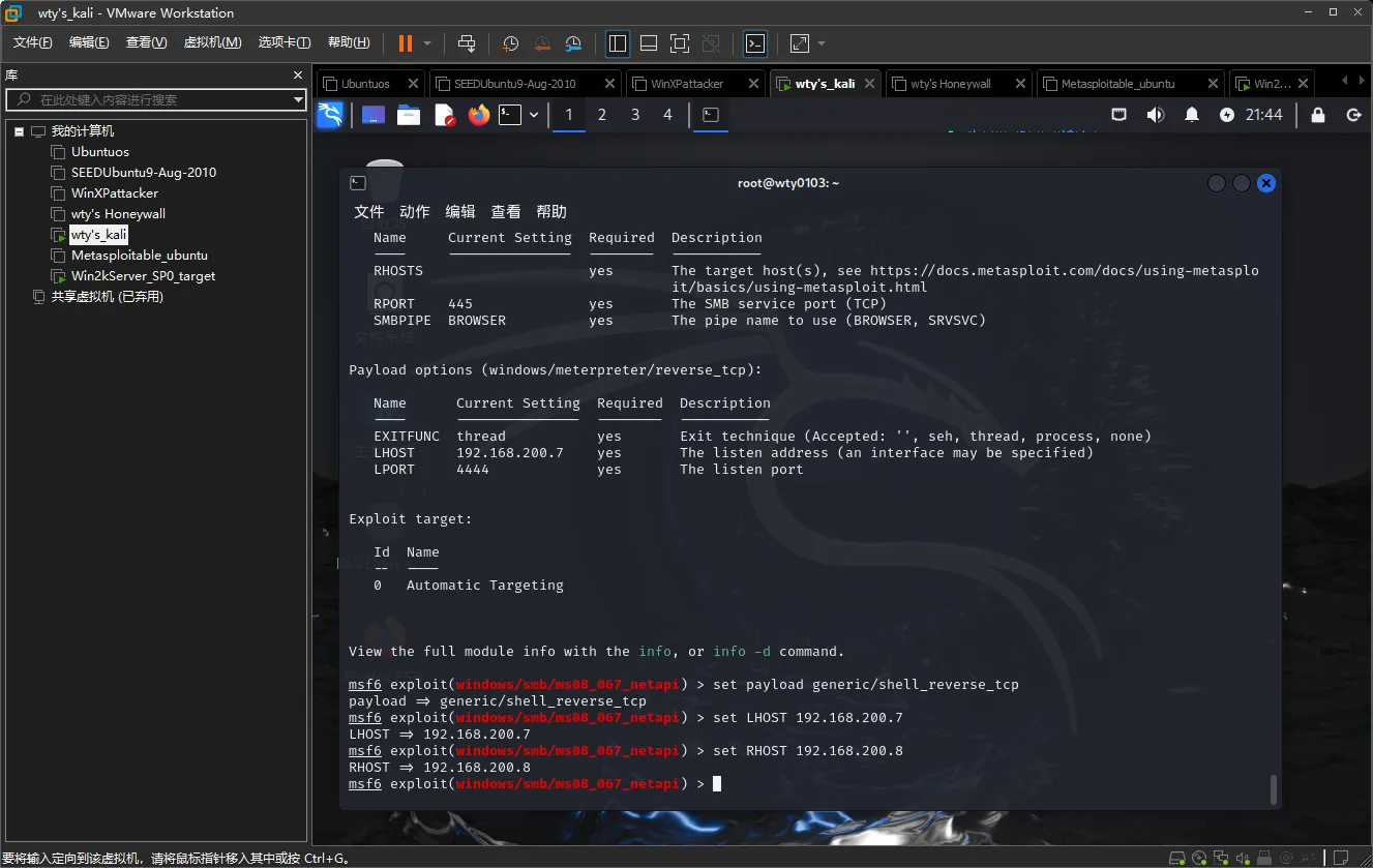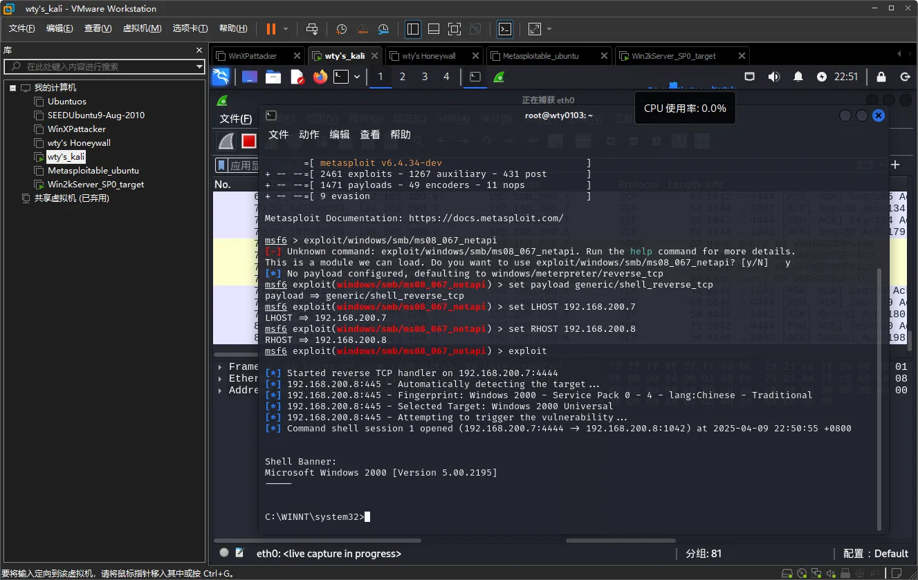 攻击方wty's_kali(ip:192.168.200.7),防守方Win2kserver_SP0_target(ip:192.168.200.8)
