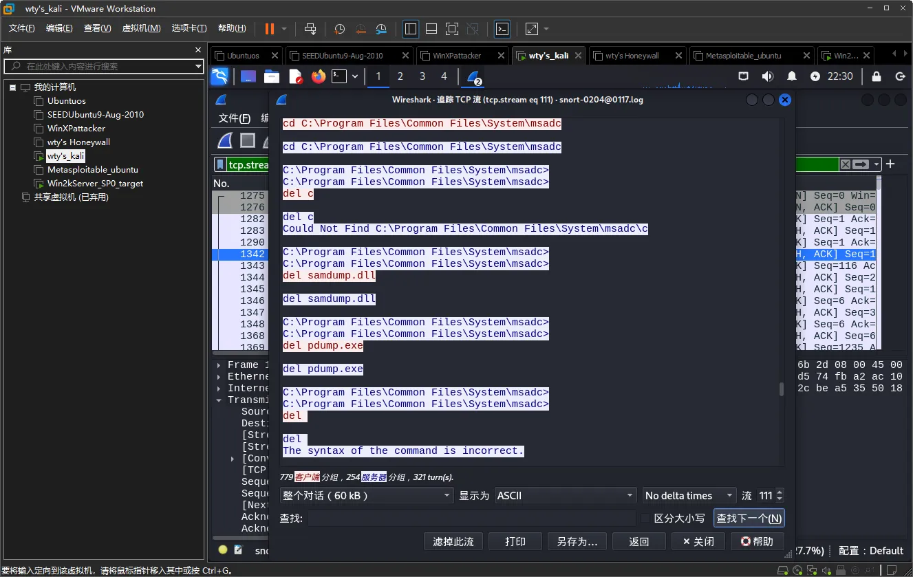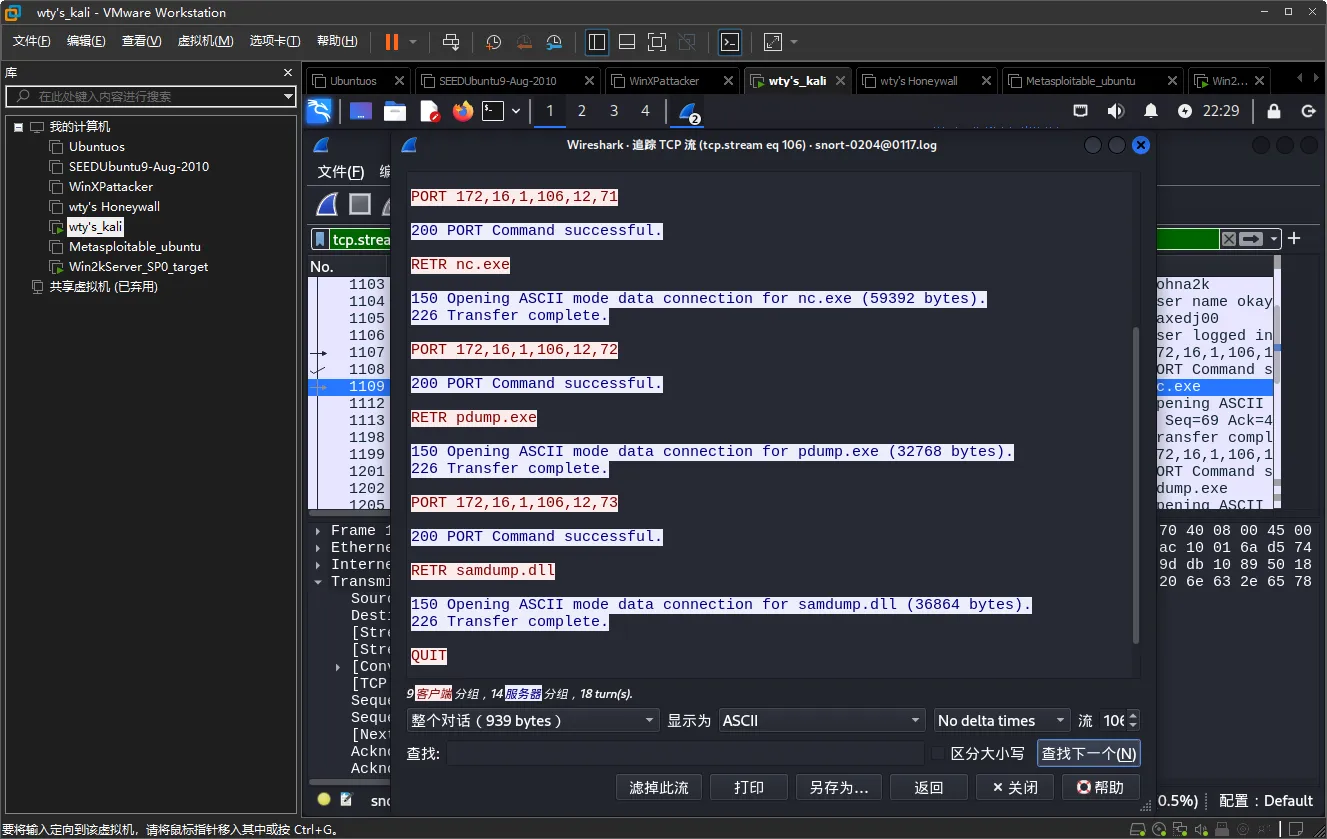 追踪数据流,这里表明攻击者利用ftp下载了nc.exe,pdump.exe,samdump.dll这三个文件
