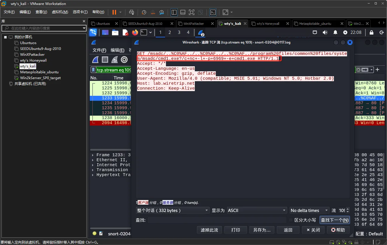防守方使用wireshark监听获得的网络数据包,分析攻击过程,获取相关信息。