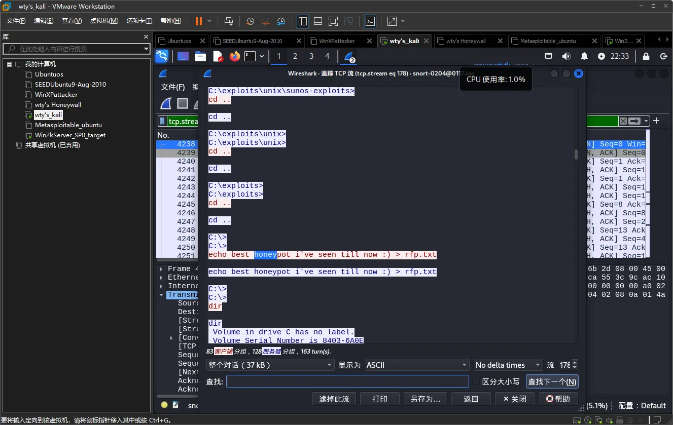 这里表明攻击者发现了靶机是一台蜜罐主机,并表示echo best honeypot