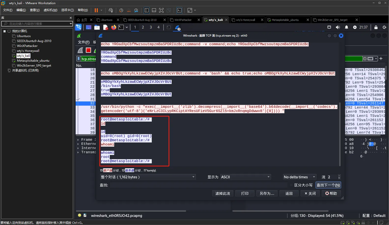 继续追踪TCP数据流可以看到攻击后输入的指令信息