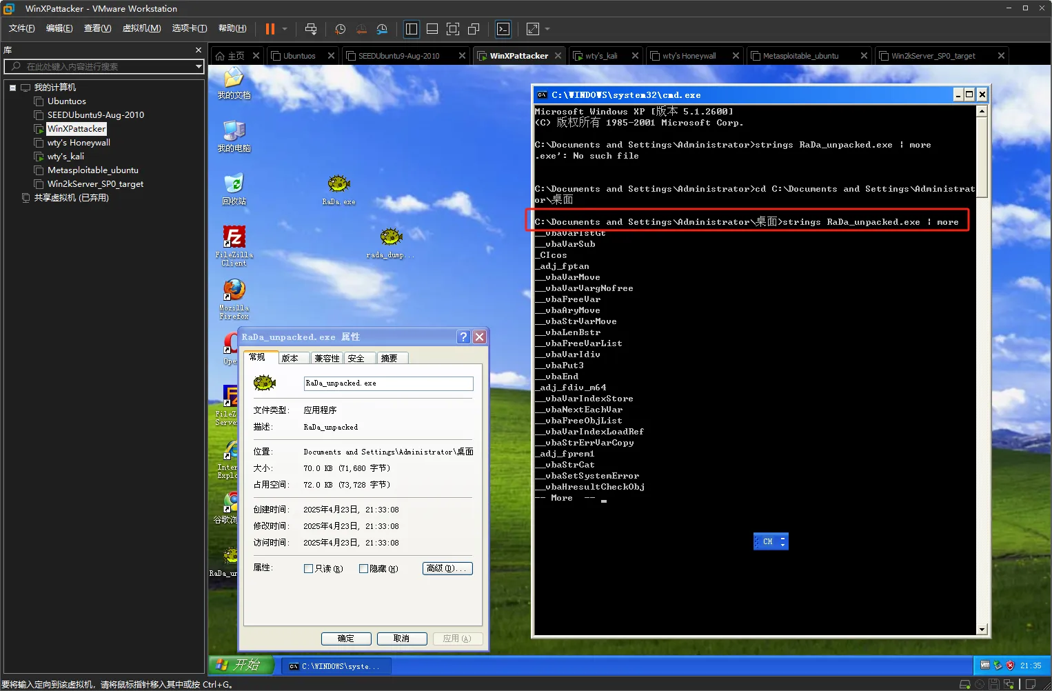 输入命令strings RaDa_unpacked.exe | more,查看脱壳后的文件