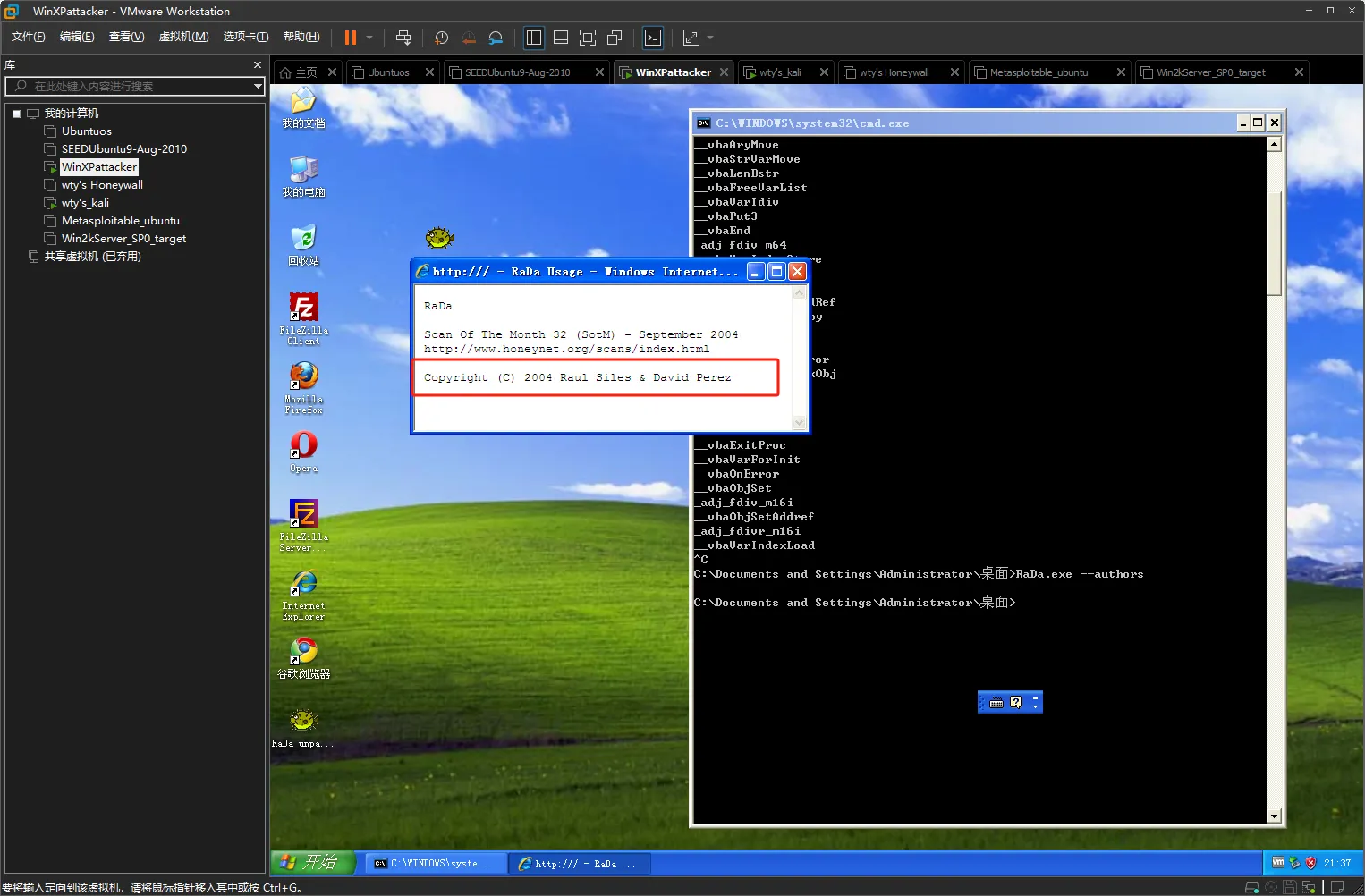使用命令RaDa.exe --authors查看文件的作者,作者为Raul Siles & David Perez