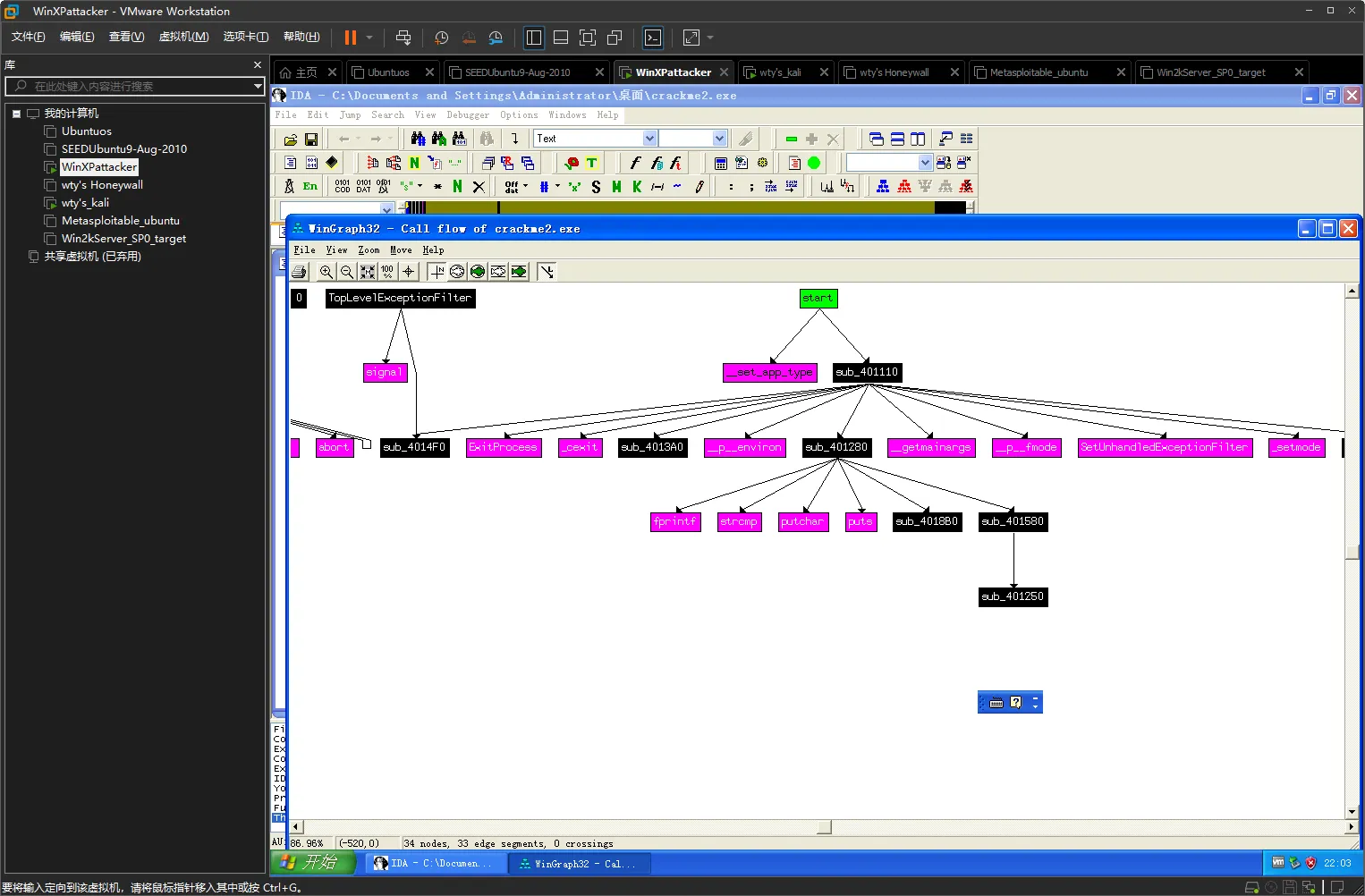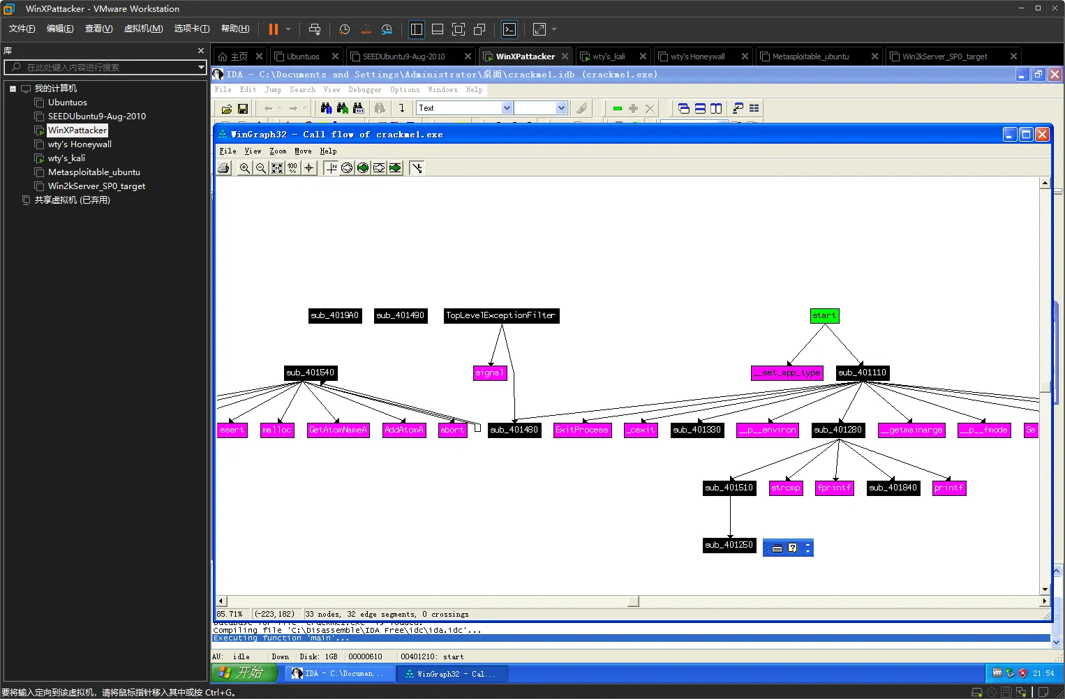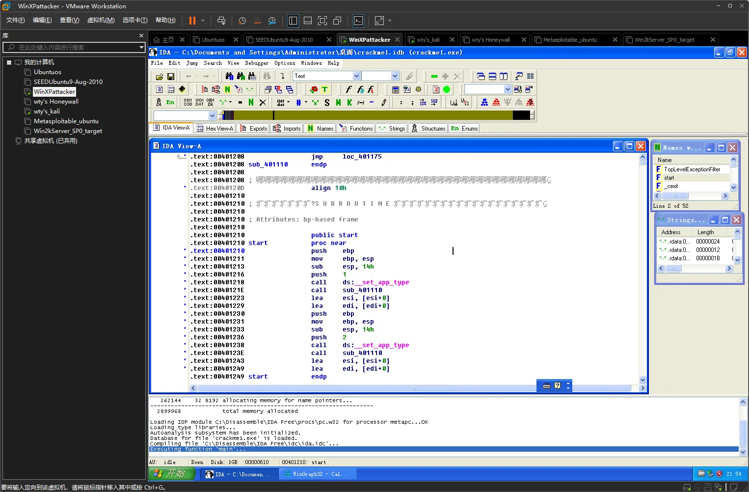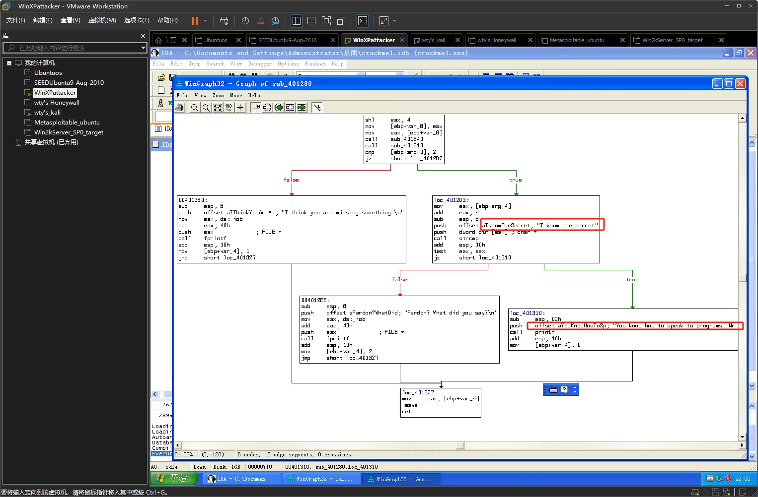 任务:在WinXP Attacker虚拟机中使用IDA Pro静态或动态分析crackme1.exe和crackme2.exe,寻找特定的输入,使其能够输出成功信息。
