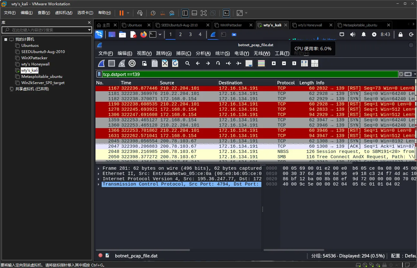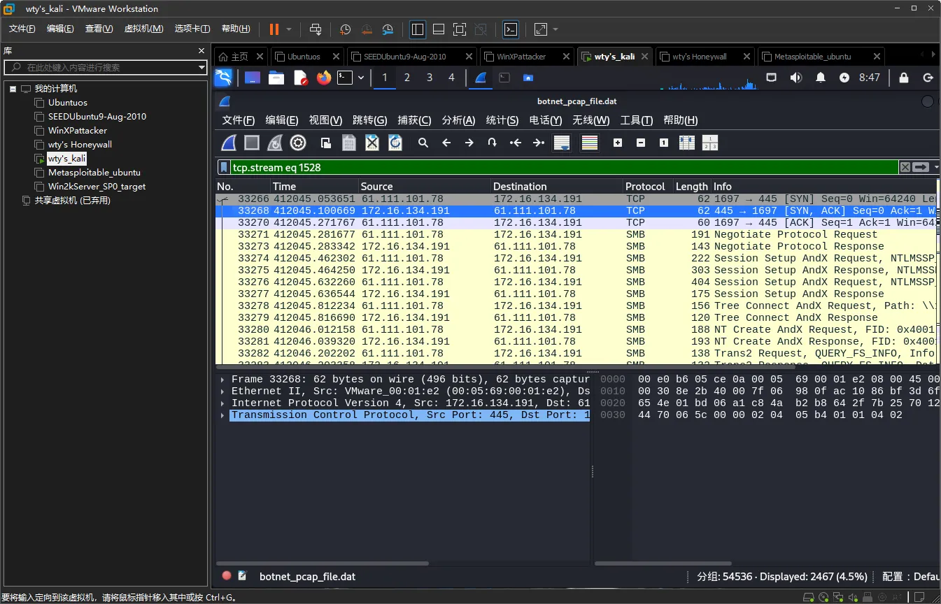 分析139号tcp端口,可以看到建立连接失败,攻击失败