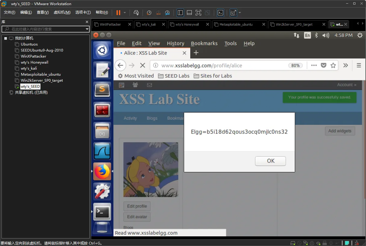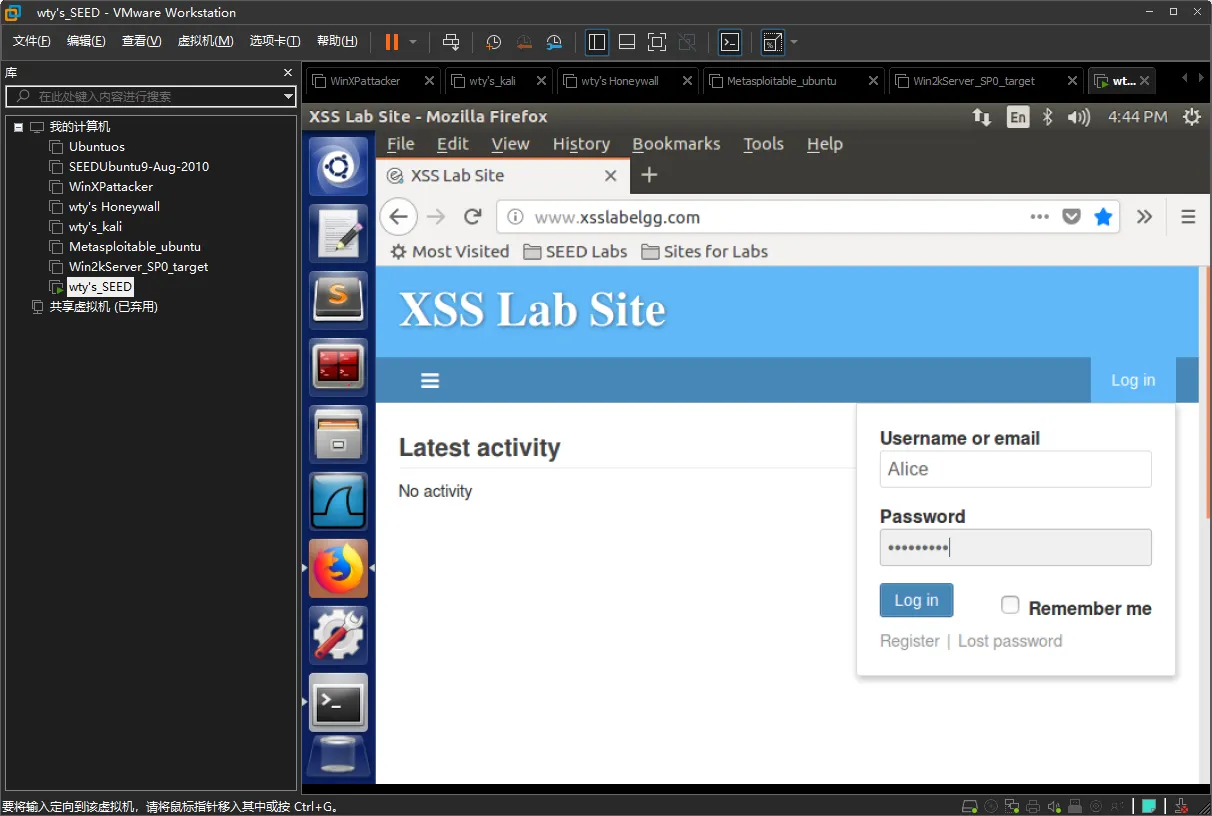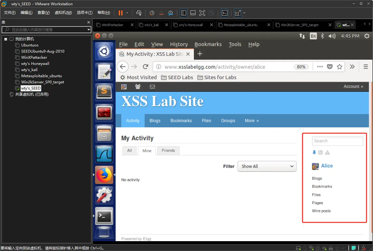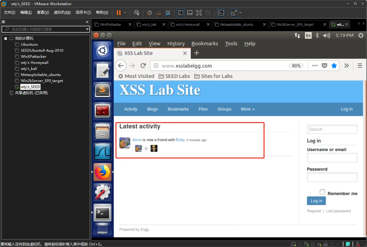 在浏览器中访问 http://www.xsslabelgg.com,并登录Alice的账号