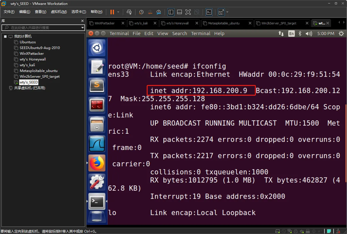 打开终端命令行输入ifconfig查看本机ip地址为192.168.200.9