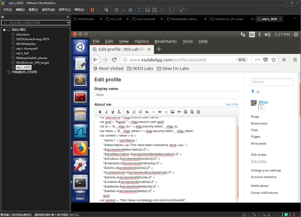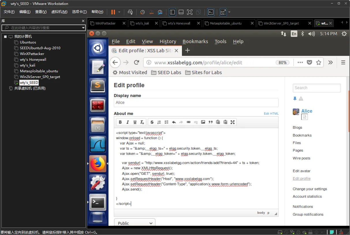 2.2SEED XSS跨站脚本攻击实验(Elgg)