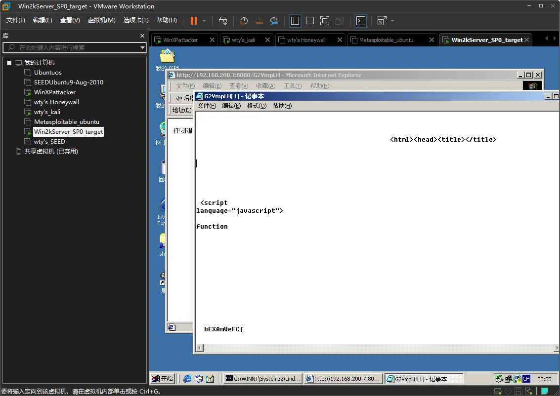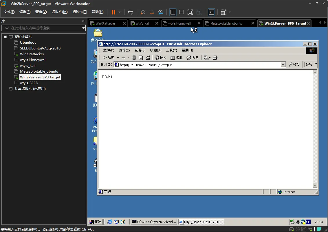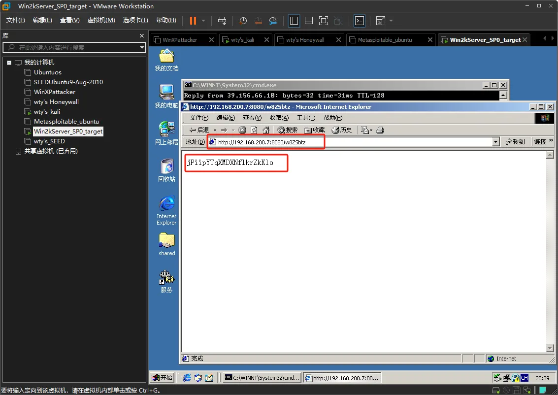使用靶机win2k上的浏览器打开此链接显示的只有一段字符串
