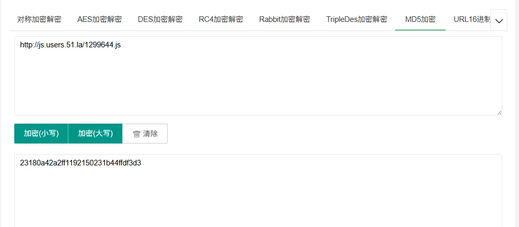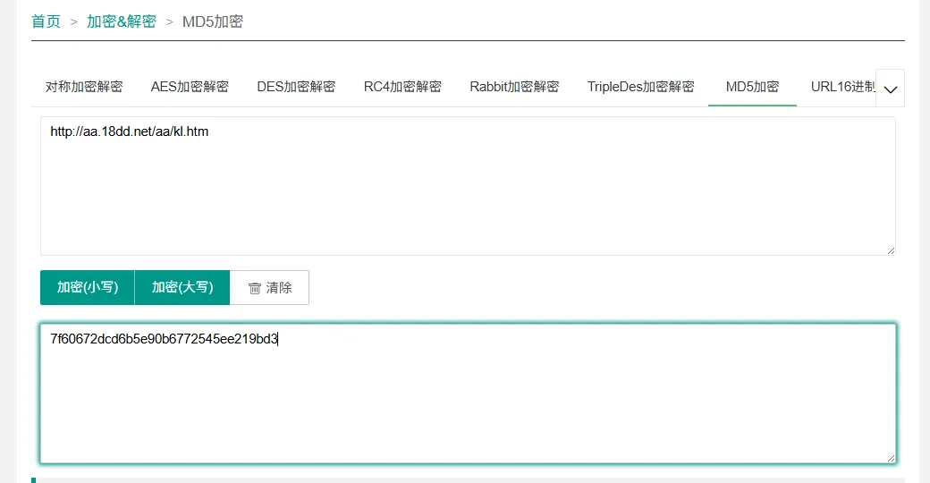 在MD5在线计算网站上计算两个网址的散列值分别为7f60672dcd6b5e90b6772545ee219bd3和23180a42a2ff1192150231b44ffdf3d3