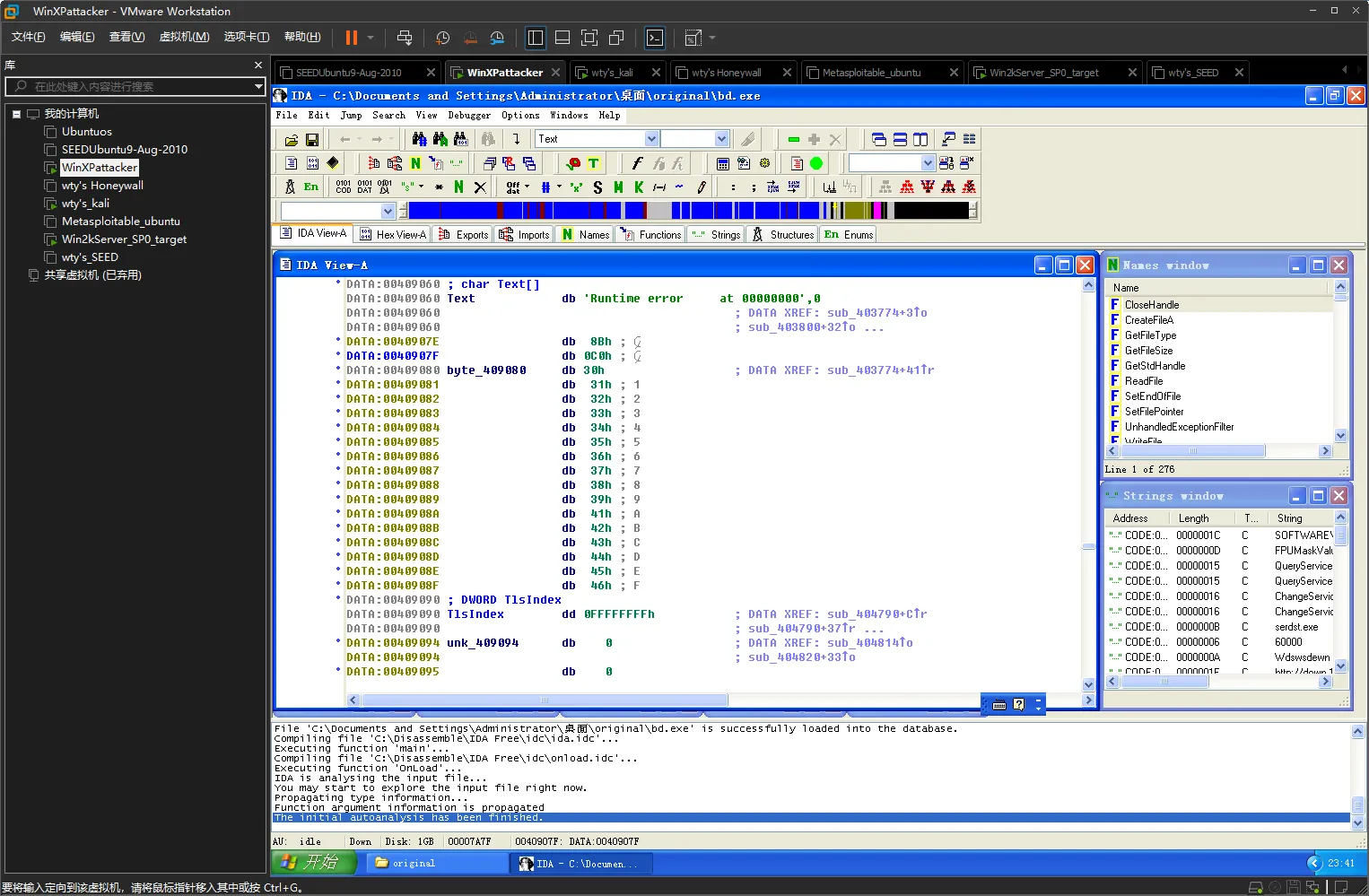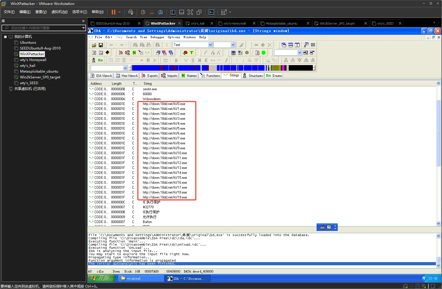 将bd.exe导入到IDA中进行反汇编,在strings发现其下载了多个病毒文件