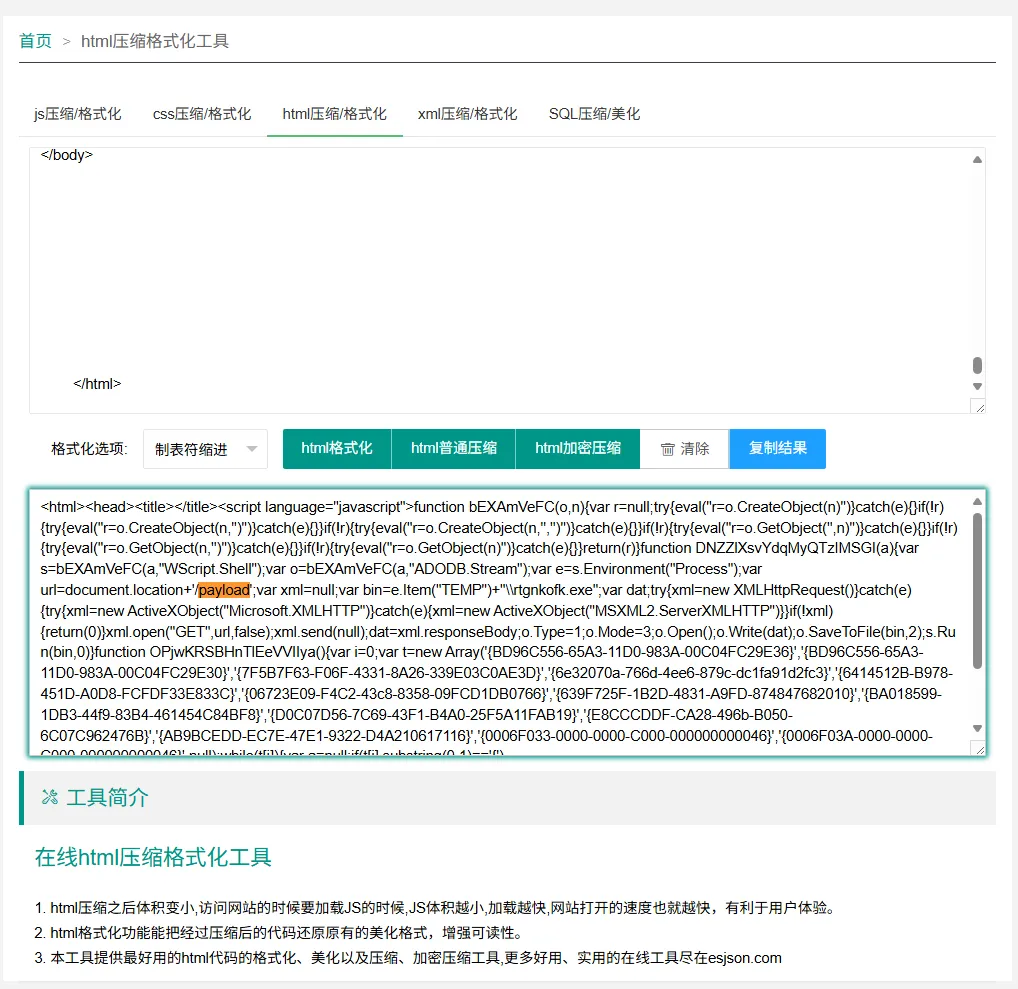使用在线工具进行压缩与格式化可以去除多余的空格和换行,格式化后如下所示