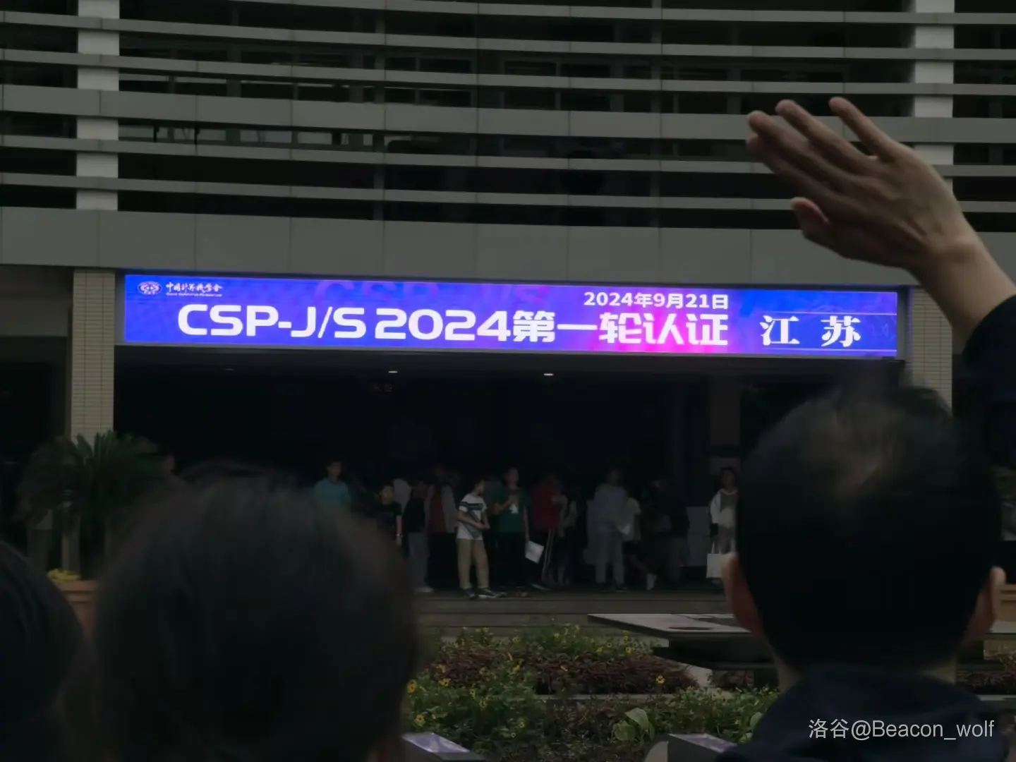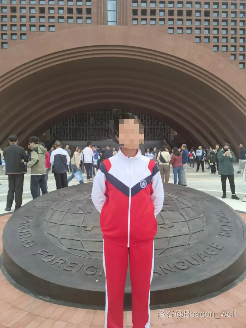 大概是六点钟左右起的吧,但七点半才出发。一个小时不到就到了考场。进去后在校园里逛了几圈,看见了小学同学。因为在一楼考的缘故所以无聊了就再跑到校门口,因为手机坏了没带就拿我妈手机看看洛谷群。亦或是盯着校门口看,结果还真看到了同班同学,正好在隔壁的隔壁的考场。