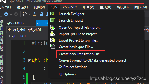 待我们写好一个Qt项目之后就可以使用插件生成一个翻译文件。