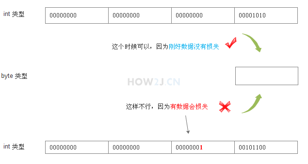 如果试图给byte类型的变量赋值超出其范围的值,就会产生编译错误,这个需要进行类型转换。