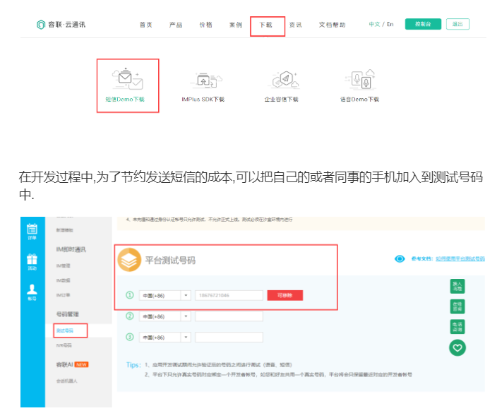 使用云通讯发送短信
