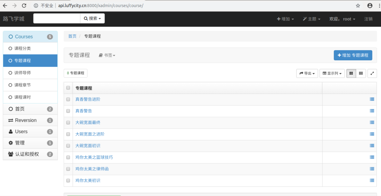 把当前新增的课程模型注册到xadmin里面.
